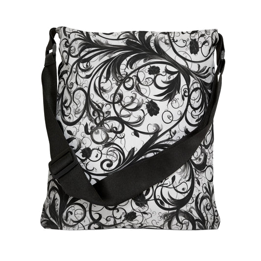 Elegant Black & White Leafy Swirls - Tote Bag