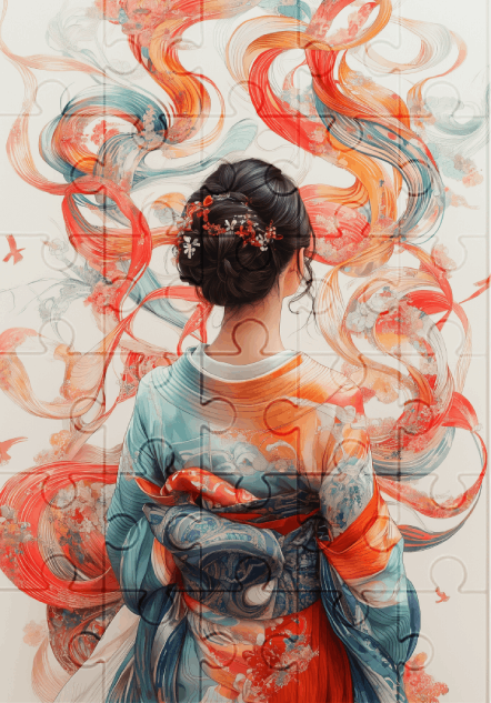 Japanese Kimono - 30-Piece Wooden Jigsaw Puzzle with Optional Frame